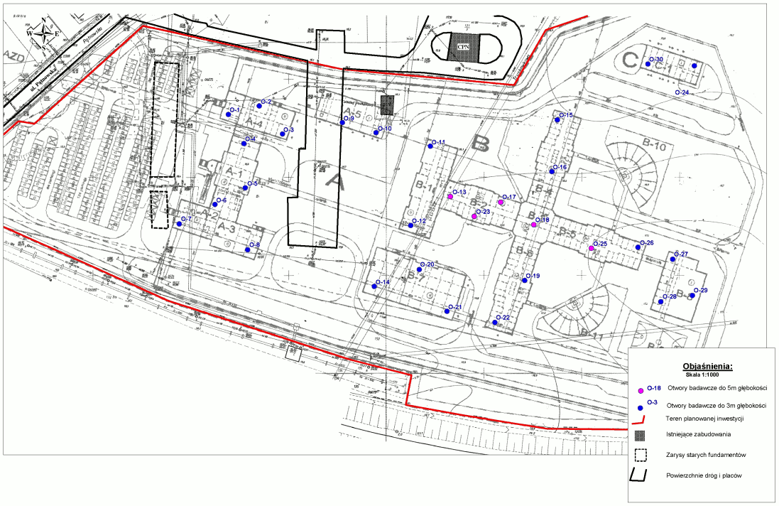 - Dokumentacja geotechniczna określająca warunki gruntowo wodne terenu projektowanej klatki schodowej i windy na terenie Zakładu Karnego Nr 1 we Wrocławiu