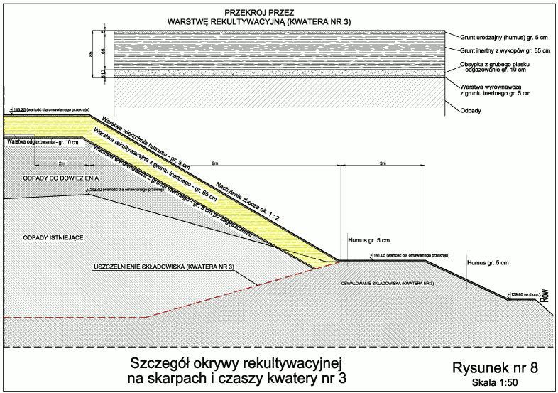- Projekt budowlano - wykonawczy rekultywacji kwatery nr 3 i budowy kwatery nr 1 wraz z uzyskaniem pozwolenia na budowę.